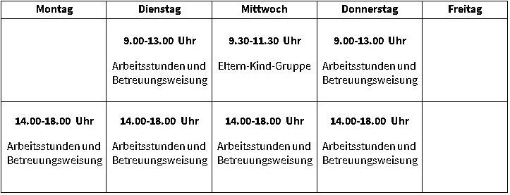 Unsere Arbeits- und Betreuungsweisungsangebote finden aktuell zu folgenden Zeiten statt:
